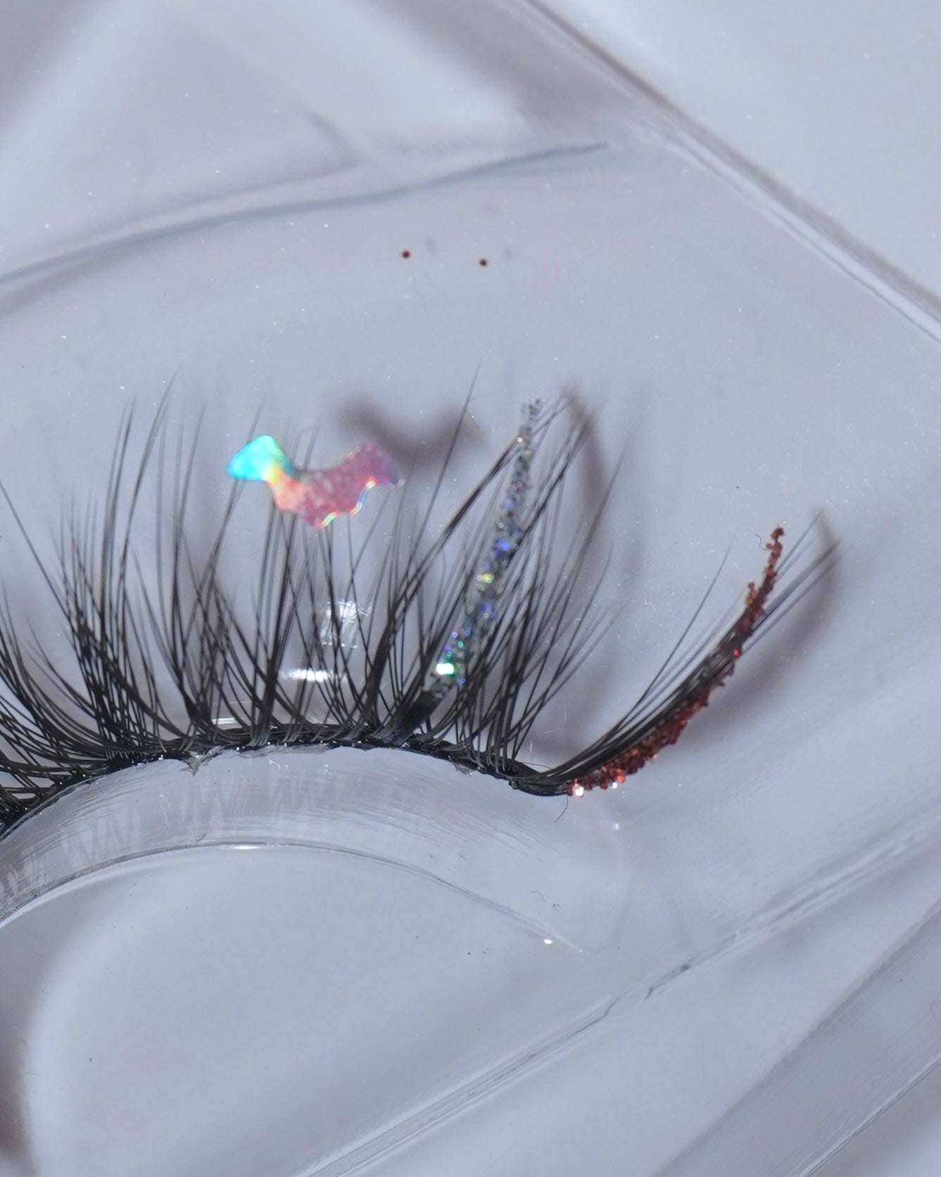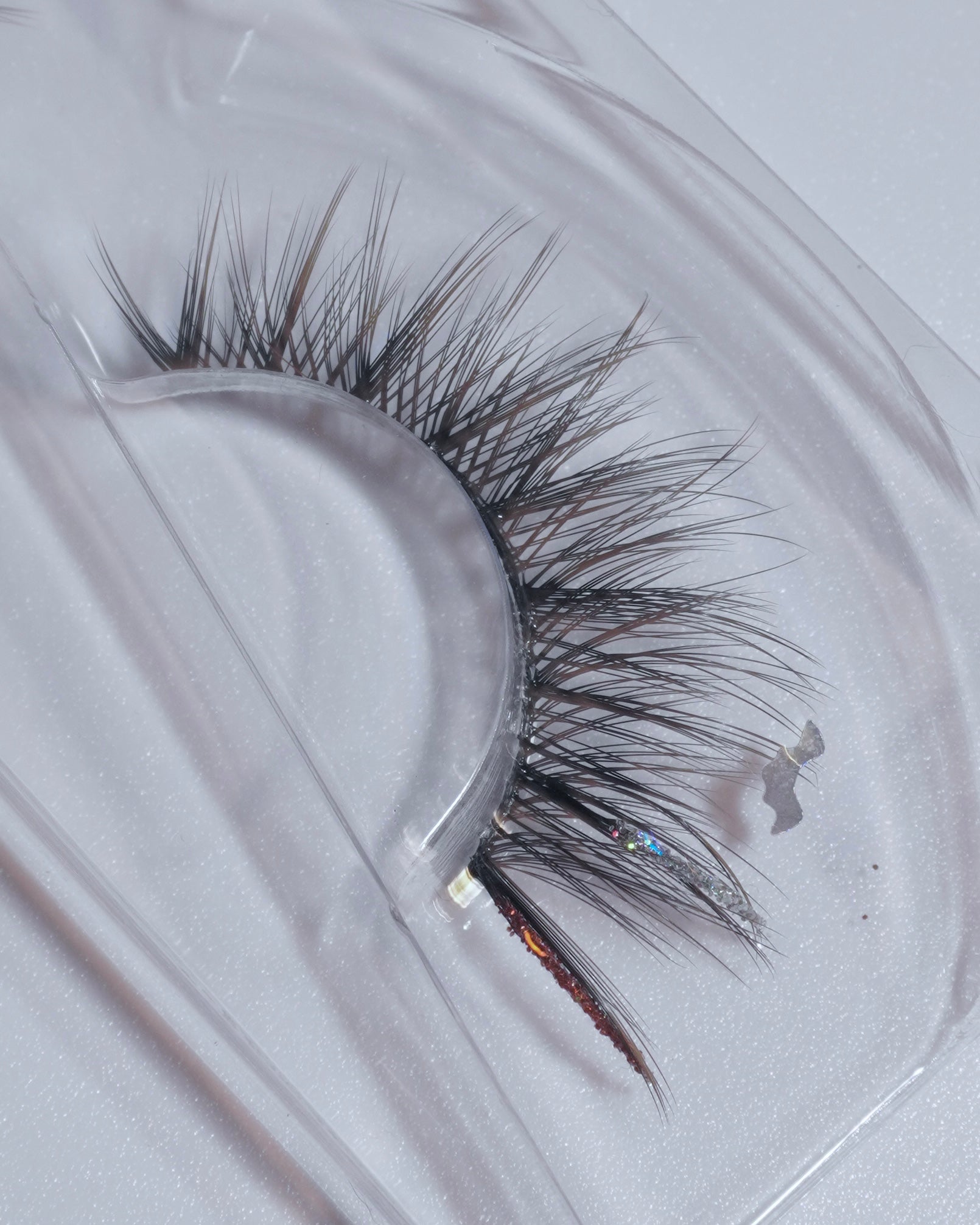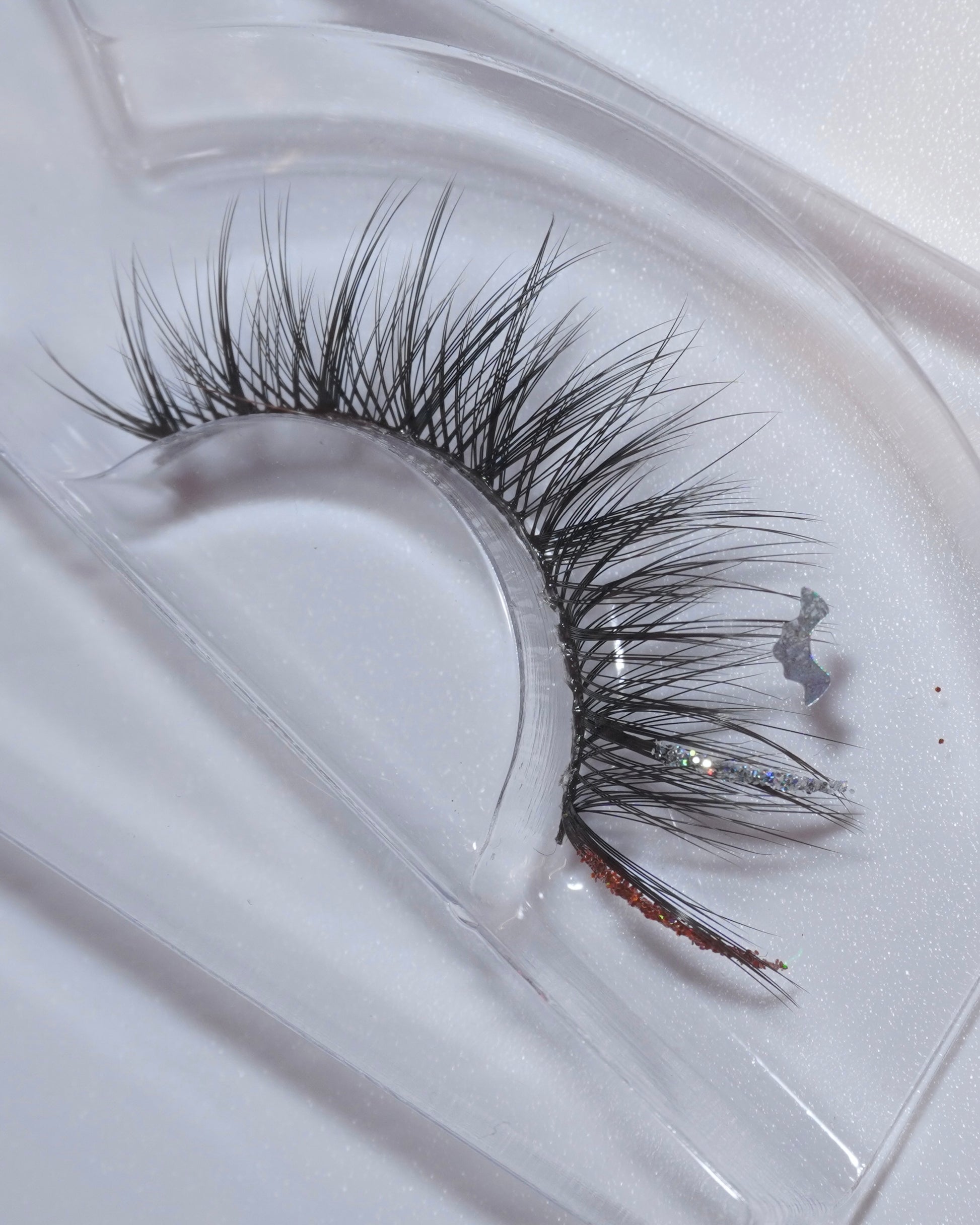 ₊˚ෆ Features a silver bat charm, a silver glitter spike, and a orange glitter spike (per strip)